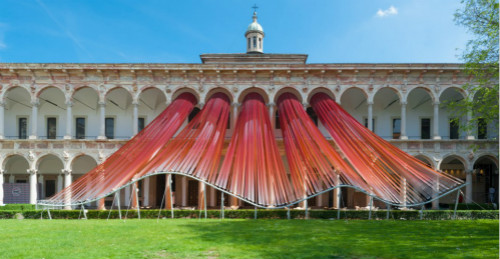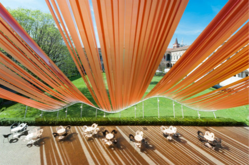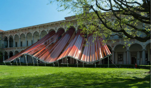 AD創(chuàng)作的公共空間ETFE膜材作品“無際”在2016米蘭設計周中展出。作品位于米蘭大學Cortile d’Onore的中央庭院,在“打開邊界”的展覽命題下,嘗試捕捉風和光線對環(huán)境造成的變化,創(chuàng)造出溫暖、靈動、自由的新空間,帶來開放、交流、對話的氛圍,提出新的思路。