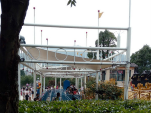 室外游樂設(shè)施膜結(jié)構(gòu)遮陽屋頂,設(shè)計(jì)簡潔不失特色,透光。