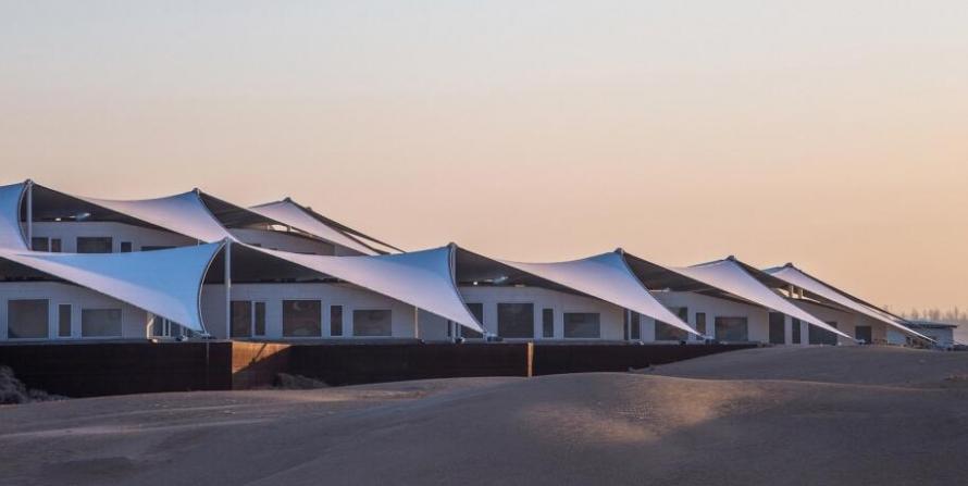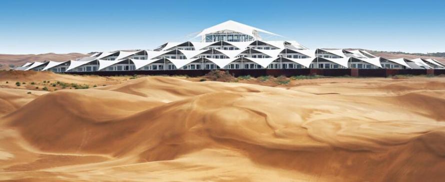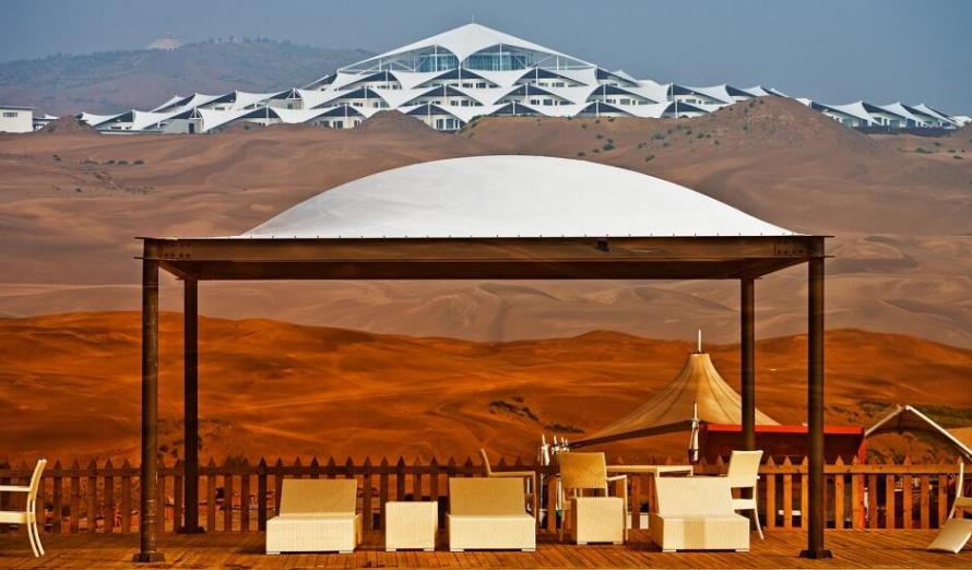 張拉膜結(jié)構(gòu)打造的沙漠酒店--響沙灣蓮花酒店