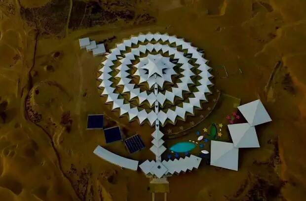 為了在沙漠中做出符合地質(zhì)環(huán)境的建筑,我們研究出一個新的結(jié)構(gòu)系統(tǒng),以特定的鋼板固定流沙,就像沙海浮舟一樣的獨特地基基礎(chǔ),基礎(chǔ)在沙子均衡的作用力下保持平衡。同時,我們使用輕鋼結(jié)構(gòu)降低對基礎(chǔ)的壓力。