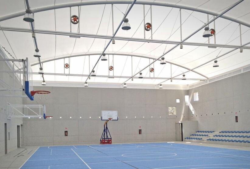 學(xué)校運(yùn)動(dòng)場(chǎng)膜結(jié)構(gòu)建筑包含室外球場(chǎng)、球場(chǎng)屋頂、球場(chǎng)看臺(tái)、公共區(qū)域遮陽(yáng)棚等設(shè)施 。