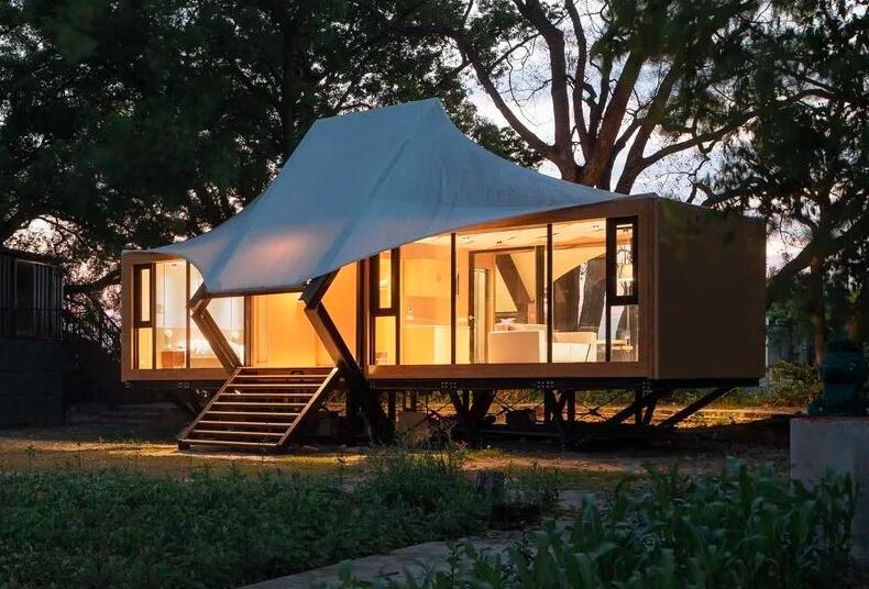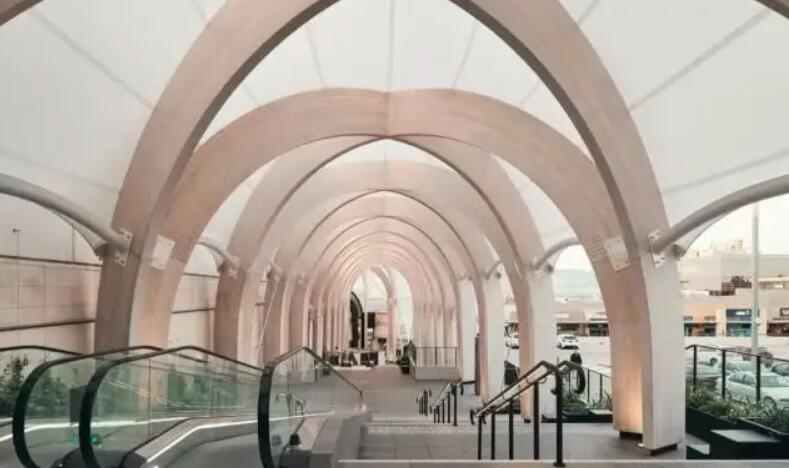 那么,張拉膜結(jié)構(gòu)過時了嗎?并沒有,在流行混搭的時代,膜結(jié)構(gòu)能駕馭的建筑形式也更加多樣化,它能搭配的不再是鋼結(jié)構(gòu),而與木結(jié)構(gòu)、竹結(jié)構(gòu),集裝箱,甚至混凝土結(jié)構(gòu)搭配也能呈現(xiàn)耳目一新的效果。它可以是小體量建筑、景觀構(gòu)筑物、也可以是大跨度建筑屋頂及建筑外立面等。