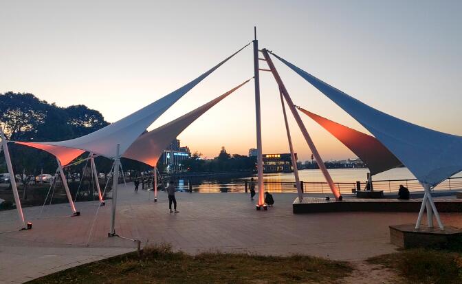 地標(biāo)性景觀膜結(jié)構(gòu)頗具雕塑式造型感,將功能與美感融為一體,為環(huán)境增色添彩。