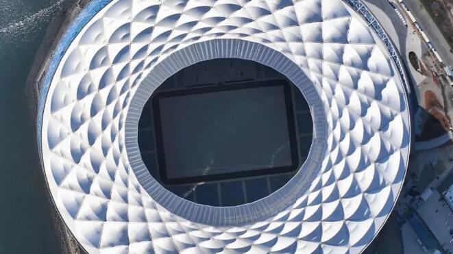 PTFE屋面+ETFE外立面,大連梭魚(yú)灣足球場(chǎng)賞析