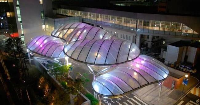 綜上所述,可見入口對(duì)于建筑的重要性,由于膜結(jié)構(gòu)自然的曲線美是其他結(jié)構(gòu)類型無(wú)法比擬的,故成為近來(lái)建筑入口及屋頂經(jīng)常采用的形式。
