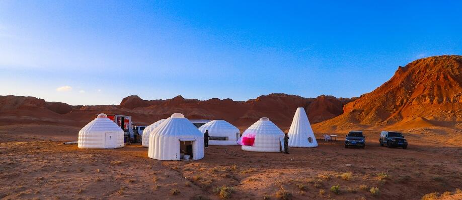 充氣蒙古包是適用于現(xiàn)代生活的周期性居住空間。可用作夏季牧場(chǎng)的奧特爾、那達(dá)慕、音樂節(jié)、越野賽、集市、民宿等住居場(chǎng)所,也可用作應(yīng)急保障房屋。