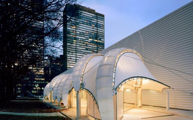 自從當代建筑重新發(fā)現織物懸垂的原理,并將其進一步發(fā)展,不僅用于臨時建筑,還用于永久性建筑和裝置。先進而耐用的織物材料變成了一種外墻和屋頂的替代品,作為保護建筑的”外衣“,在建筑業(yè)中引發(fā)了一個高度專業(yè)化的領域。