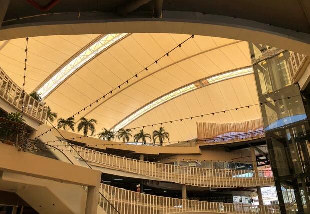 當(dāng)考慮用膜結(jié)構(gòu)形式來建設(shè)商業(yè)中心屋頂,需要了解其特點和設(shè)計原則。膜結(jié)構(gòu)屋頂是一種利用膜材料建成的屋頂結(jié)構(gòu),它集輕盈、美觀、大跨度、高透光、時尚等特點。在設(shè)計膜結(jié)構(gòu)屋頂時,需要考慮建筑物的用途、氣候條件、結(jié)構(gòu)安全性和經(jīng)濟(jì)性等因素。