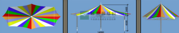觀瀾一體育公園景觀膜結(jié)構(gòu)出入口工程,下圖為公司出的方案設(shè)計(jì)效果圖,出入口設(shè)計(jì)為曲線邊界橢圓形,整體似一把彩虹色的大傘,集時(shí)尚、活潑、功用于一體。
