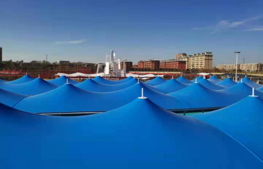 黑龍江鐵力經(jīng)開(kāi)區(qū)集市大棚膜結(jié)構(gòu)工程近日完工,大棚設(shè)計(jì)為尖頂張拉結(jié)構(gòu),采用白、紅、黃、藍(lán)、綠五色膜材,一排排一列列遍布于廣場(chǎng)之上,顯得十分壯觀。