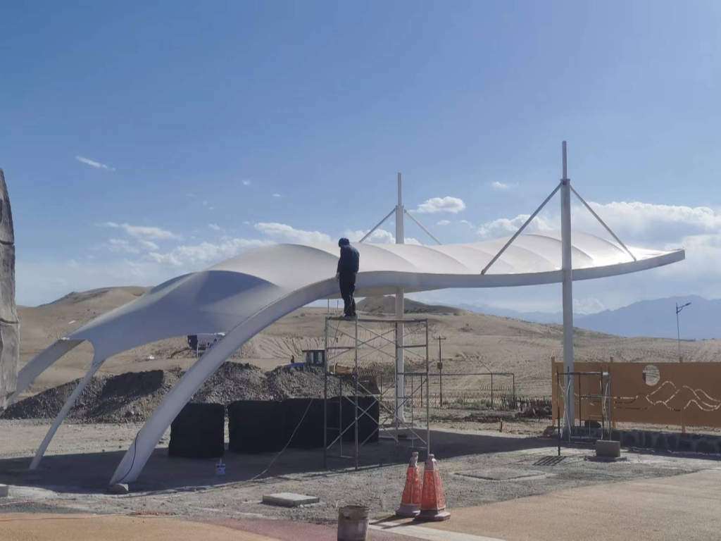 張掖沙漠體育公園膜結(jié)構(gòu)工程項目施工進(jìn)入尾聲,該項目包含公園出入口張拉膜結(jié)構(gòu),膜結(jié)構(gòu)車棚及膜結(jié)構(gòu)看臺等類別,工程如期完工,目前工人正進(jìn)行細(xì)節(jié)完善及清潔工作。