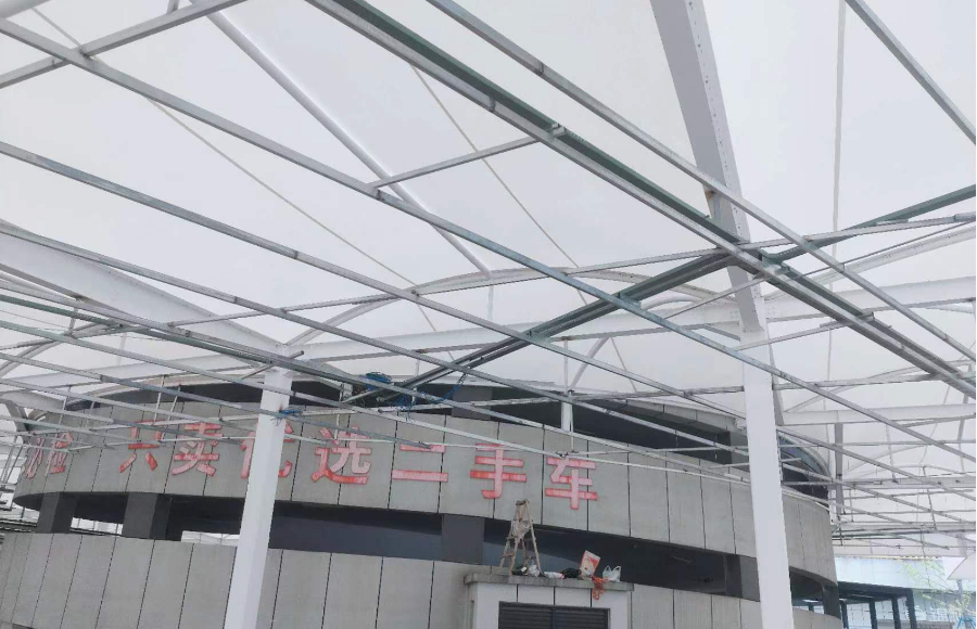 雙流二手車市場膜結(jié)構(gòu)工程施工進展