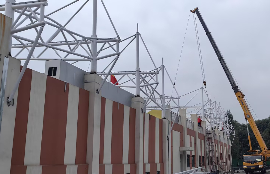 青海海東學(xué)校膜結(jié)構(gòu)看臺工程進展