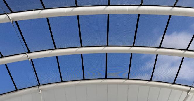 ETFE 膜材的優(yōu)點:透光率高(透明膜材可達90%)、透光透景,色彩豐富(可以各種顏色,而且通過鍍點可以控制透光率和遮陽系數(shù)),柔韌性好,非常適合應用于(氣枕式)充氣膜結(jié)構(gòu)形式,以及膜單元板塊面積較小的單層張拉膜。
